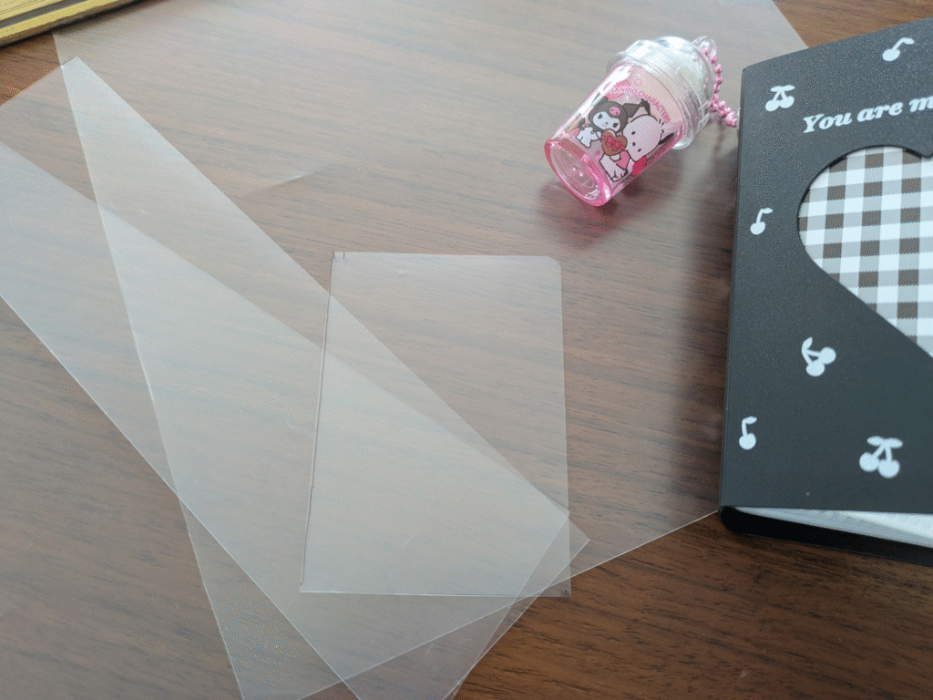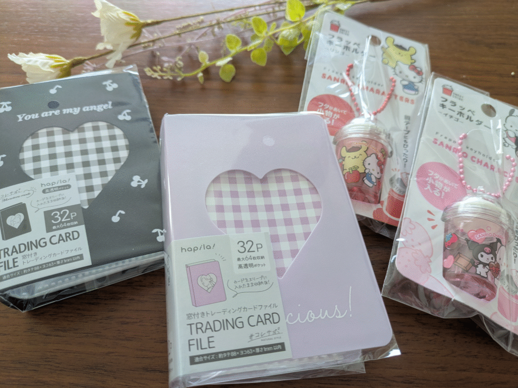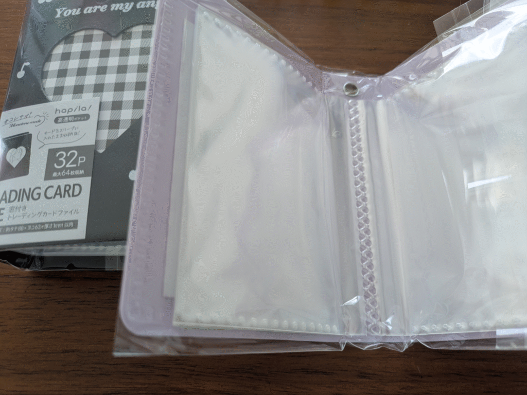 購入したファイルはトレーディングカード用のファイルなので少し小さめですが、キーホルダーをつける穴がついていたので、好きなキーホルダーをつけたら可愛いかも!とこちらにしました。