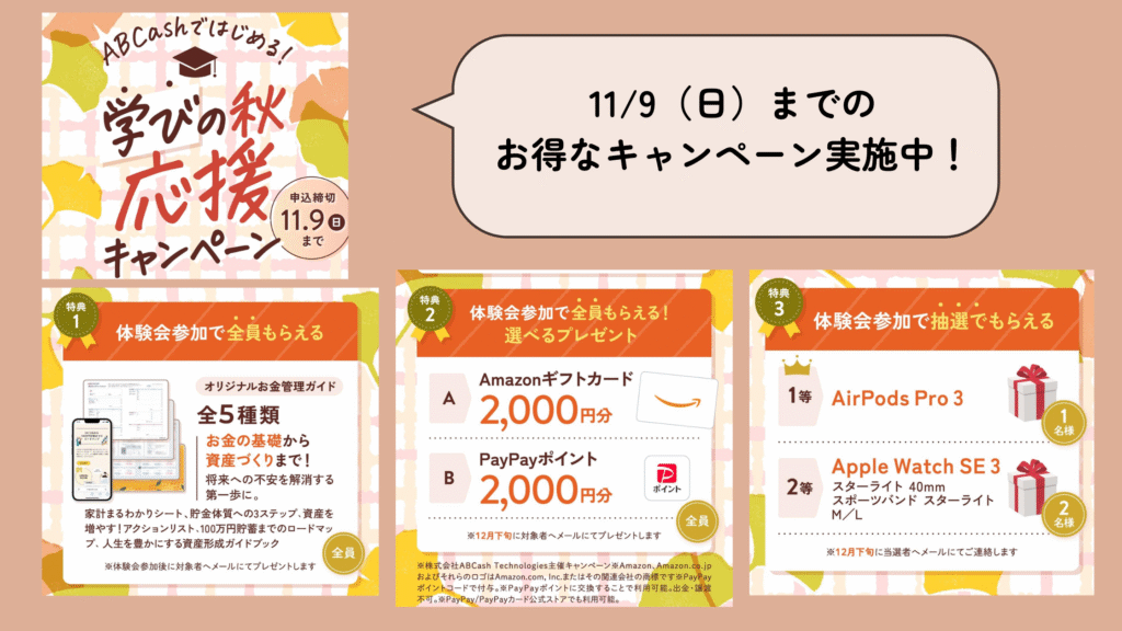 ABCashは、貯金から投資まで全て学べる、お金のトレーニングサロンです。