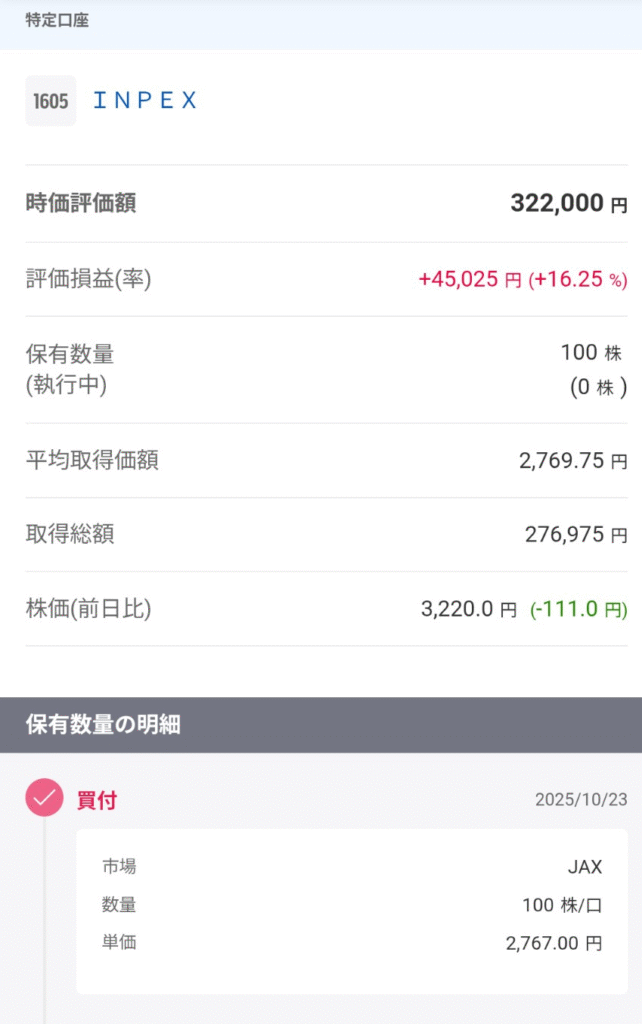 この日は前日よりも111.0円値下がりしてしまいましたが、短期間でも大きな含み益をつくることができました!
