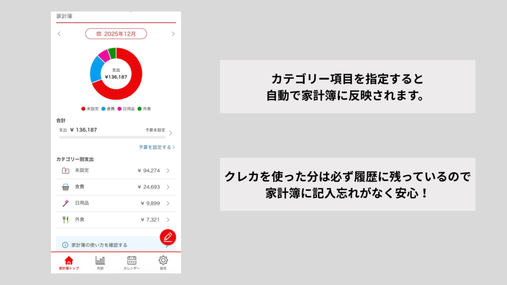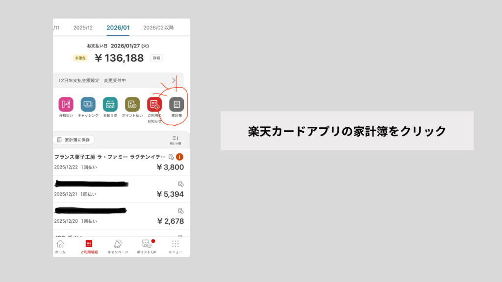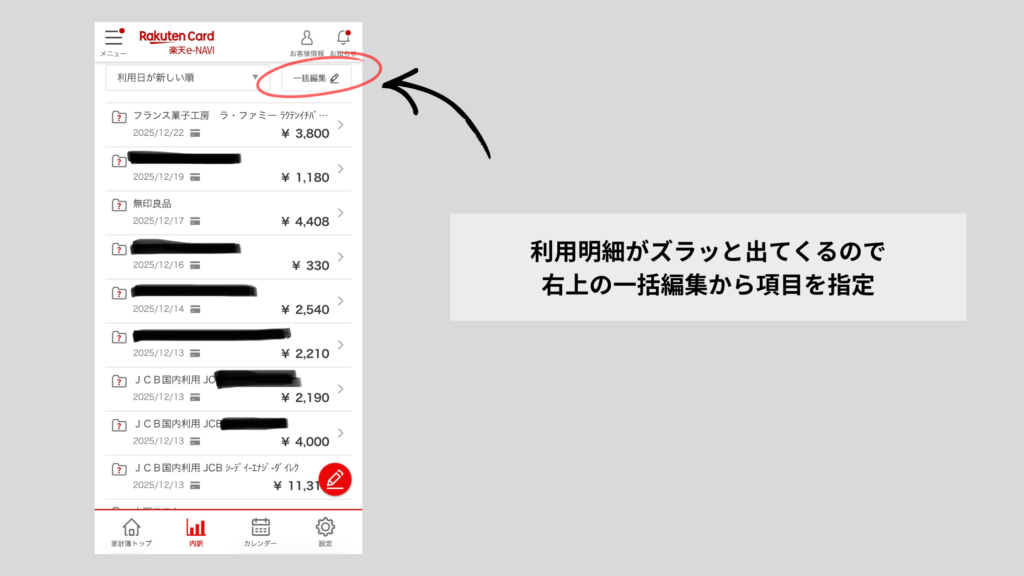 楽天カードを使えば、利用明細が自動で記録されるため、手入力がほぼ不要です。